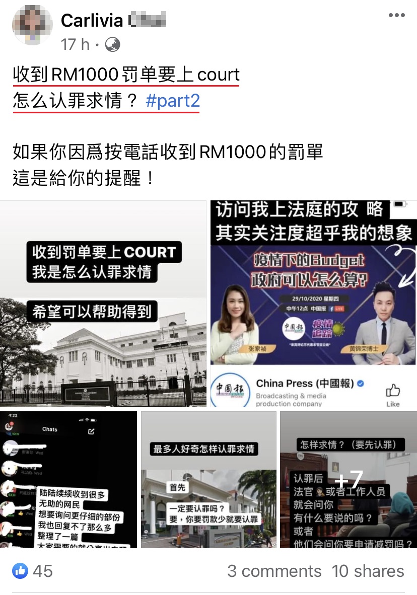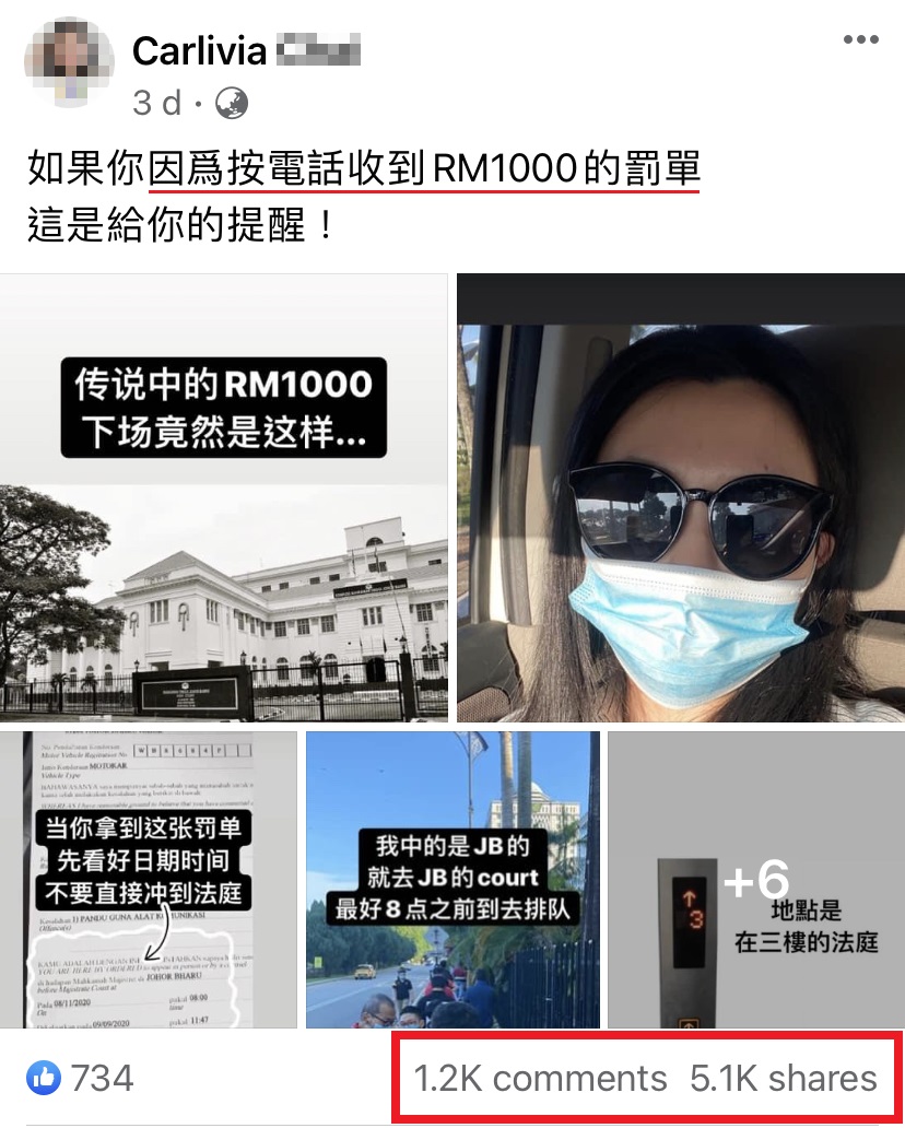 近日一名大马女网友PO文分享照片引起网民疯传。她在帖子里示范给大家看,如果因开车滑手机而收到 RM1000 的罚单,你就必须完成以下的步骤才能解决掉你的罚单!