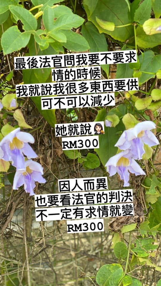 ▼ 在女网友的求情下,法官最后将 RM1000 的罚款减至 RM300!