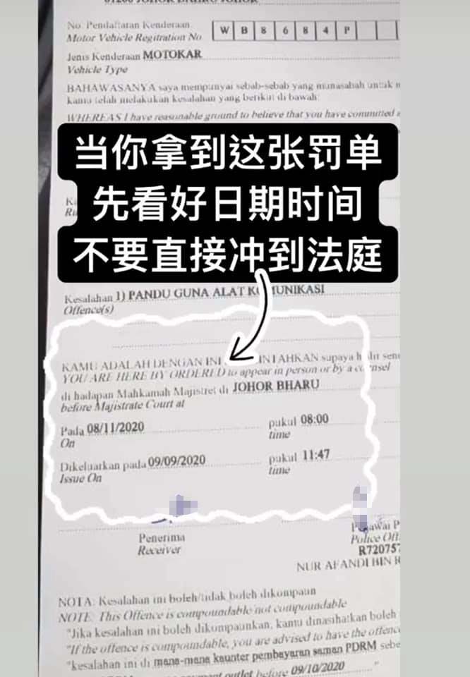 ▼ 第一次收到这样的 saman,任谁都会难以置信!而且缴付这张罚单并不是轻而易举的事,还需要上法庭的!