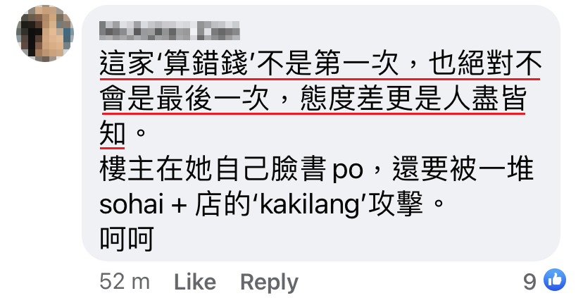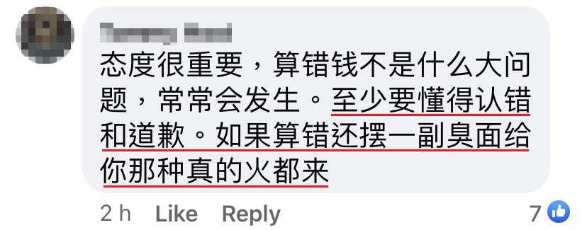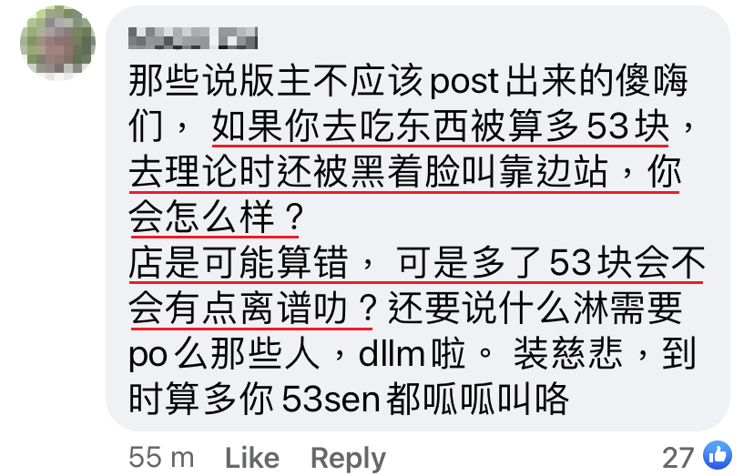 天哪,不仅没有道歉,还叫姐站一边等她!最后终于算对了,总数是 RM123.30,总共多收 RM53!