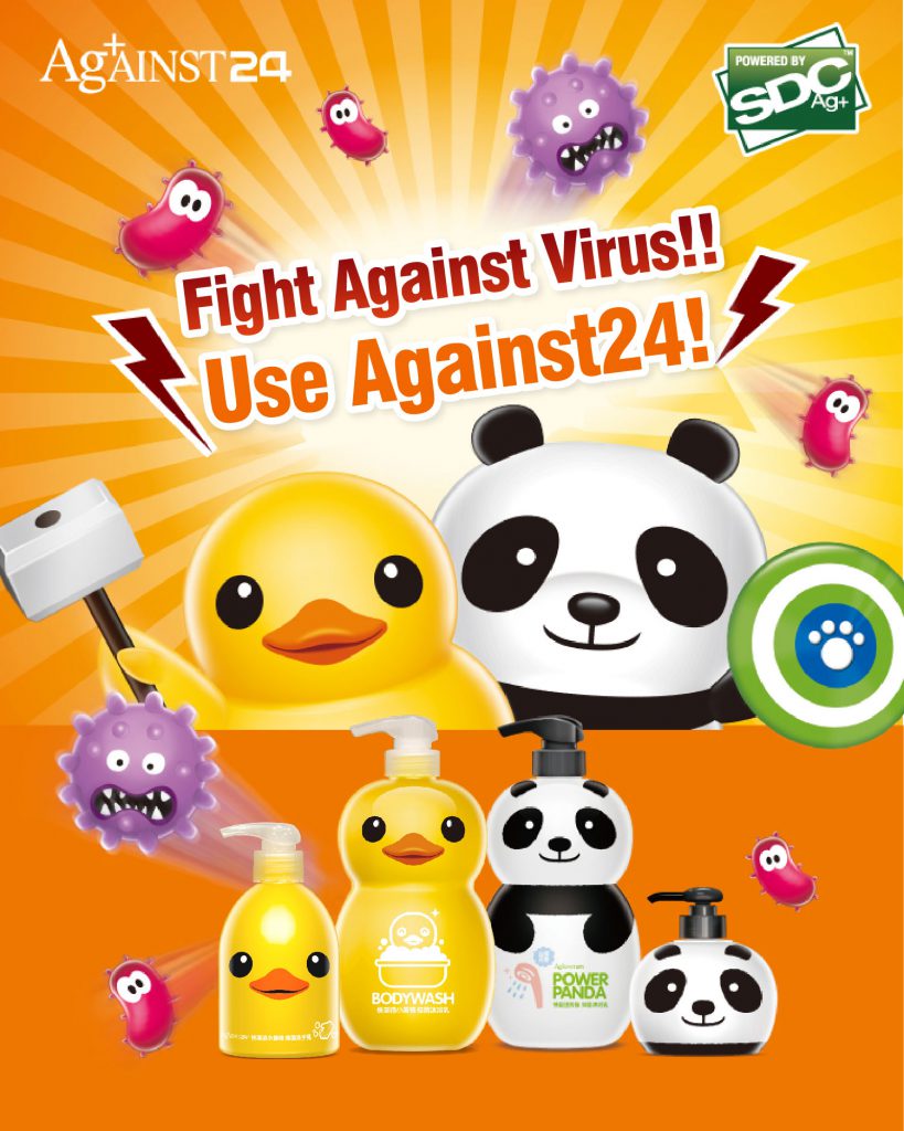 答案就是Against24 的产品采用了生物特性抗菌的SDC,而且SDC Ag +专利制剂能在30秒内消除主要病原体,抗菌率高达99.999%非常适合疫情期间使用!