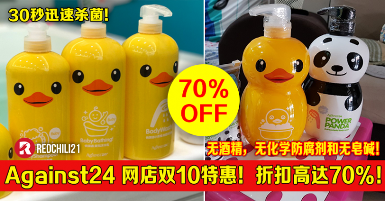 Against24 网店双10特别优惠! 折扣高达70%!无酒精,无化学防腐剂和无皂碱!