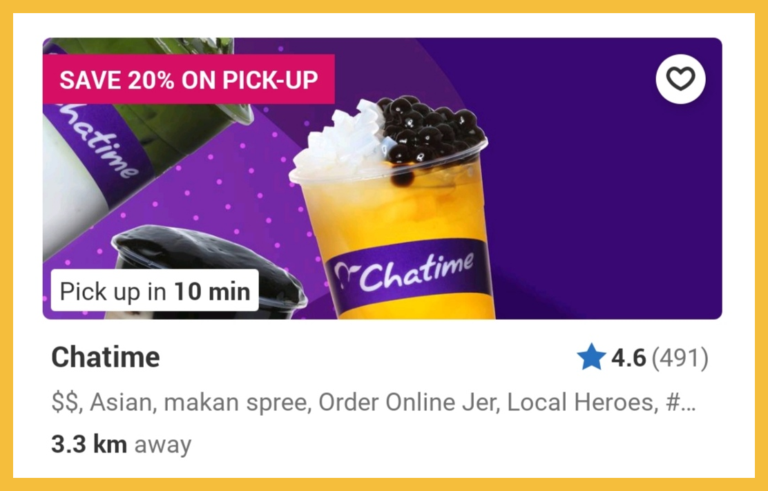 促销活动:Foodpanda 与 Chatime 联合推出Pick-Up 20%大优惠