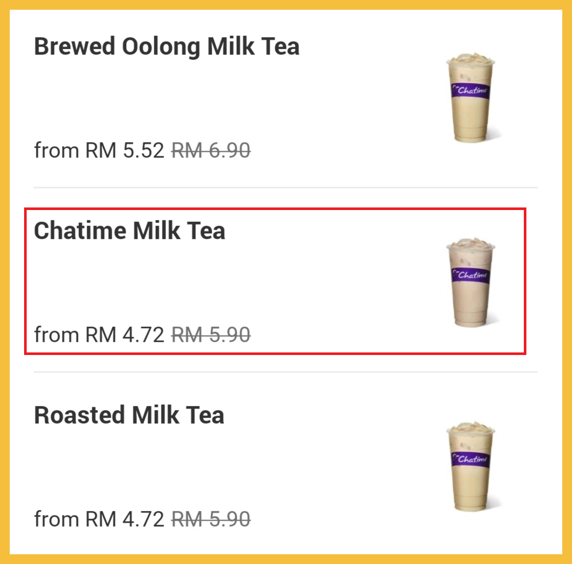 步骤2:选择你想喝的饮料,例如:Chatime Milk Tea。