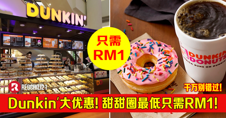 爱吃Donut 的朋友,有好消息!大马Dunkin’ 推出10月份大优惠!甜甜圈最低只需RM1!