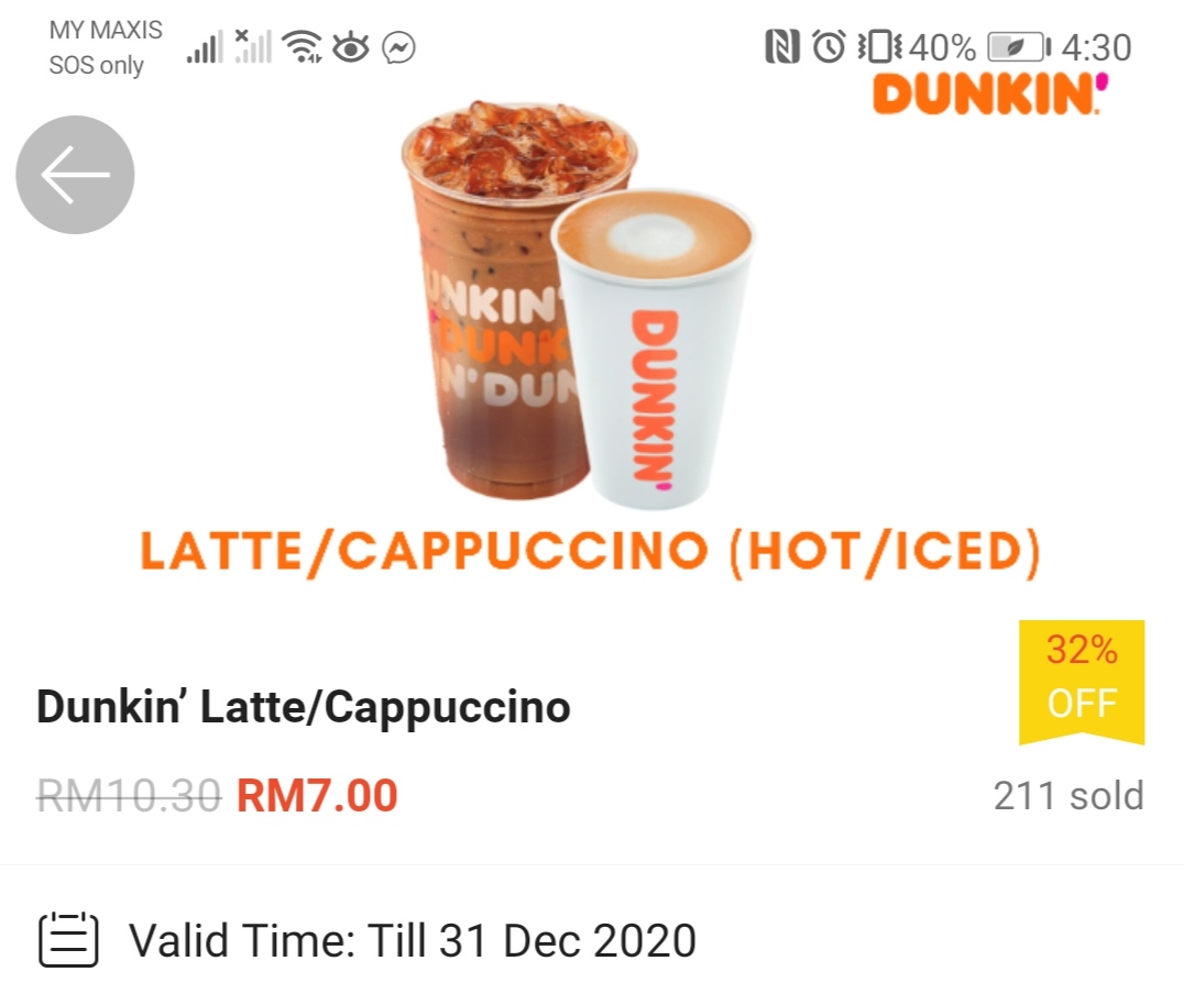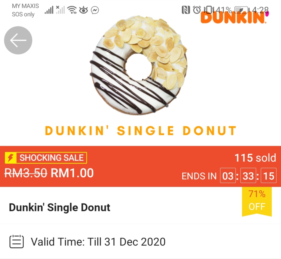 这项优惠是由Dunkin’ 与Shopee 联合推出美食券,甜甜圈最低只需RM1!喜欢吃甜甜圈的朋友,绝对不可错过啦!