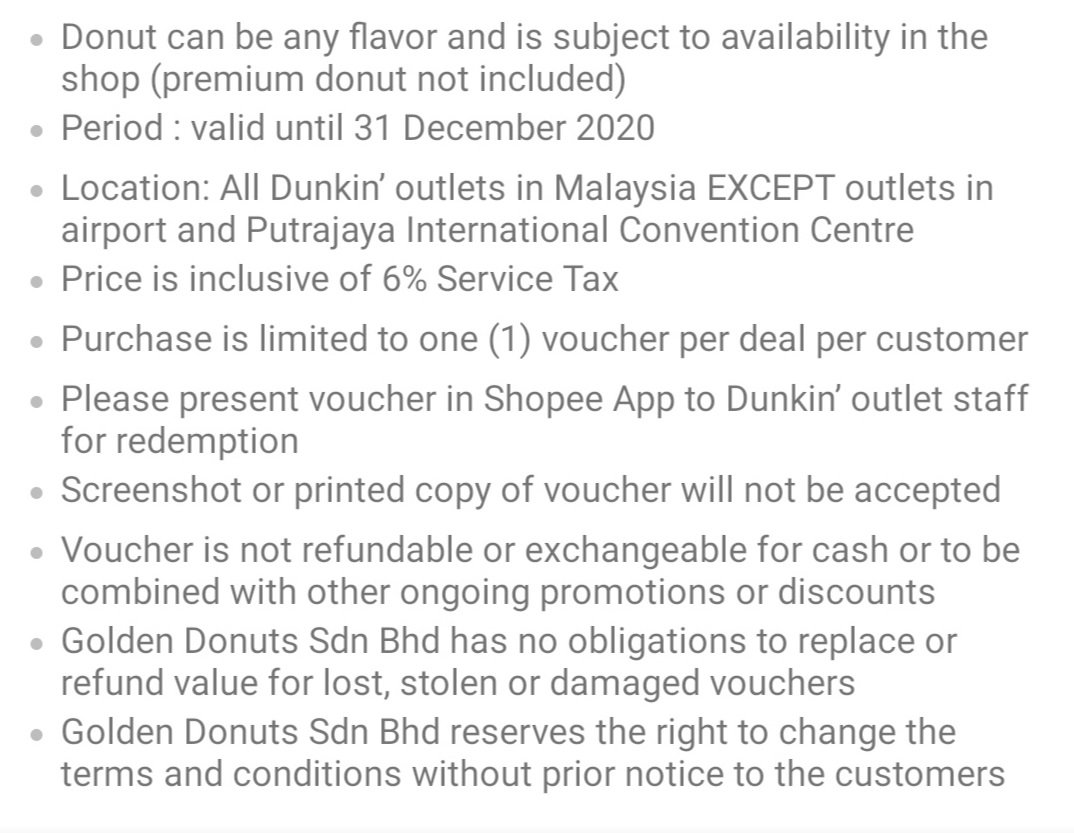 兑换地点:所有Dunkin’ 分行(机场和Putrajaya International Convention Centre)