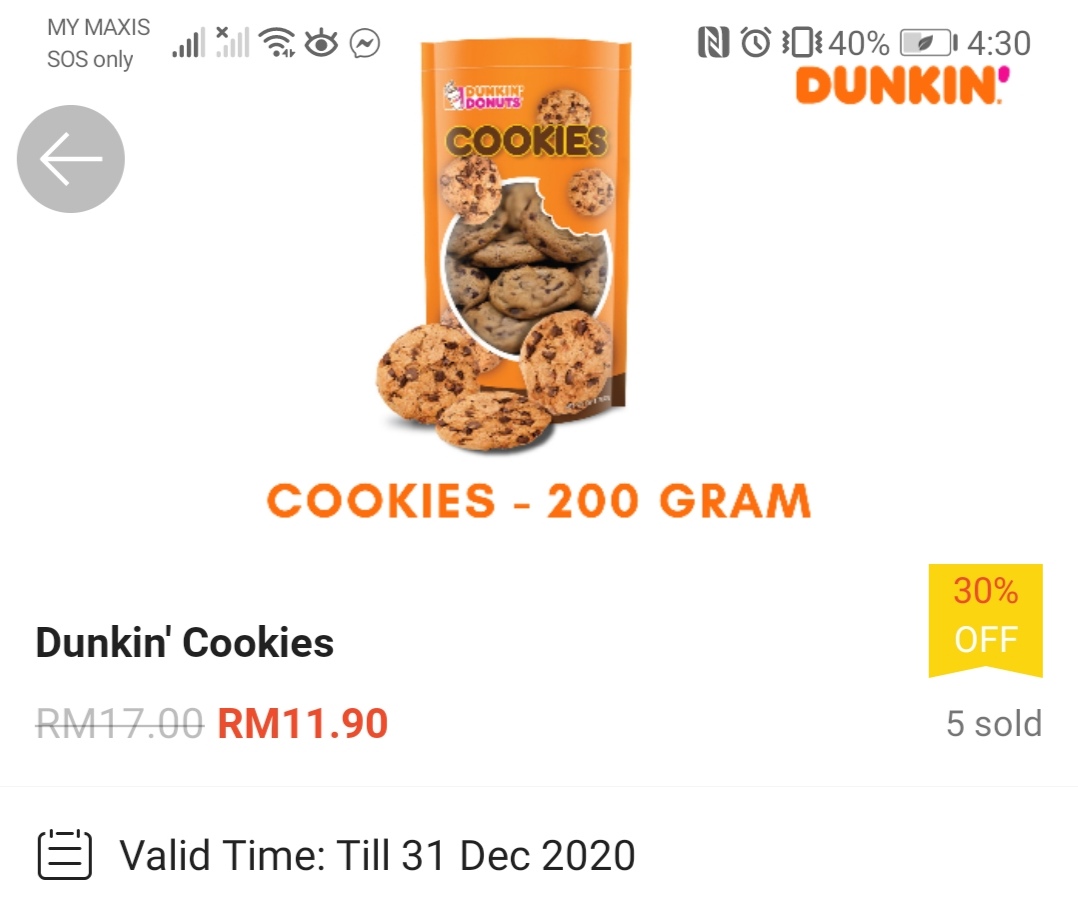 ▼⑤ Dunkin’ Cookies —— 只需RM11.90(原价RM17)
