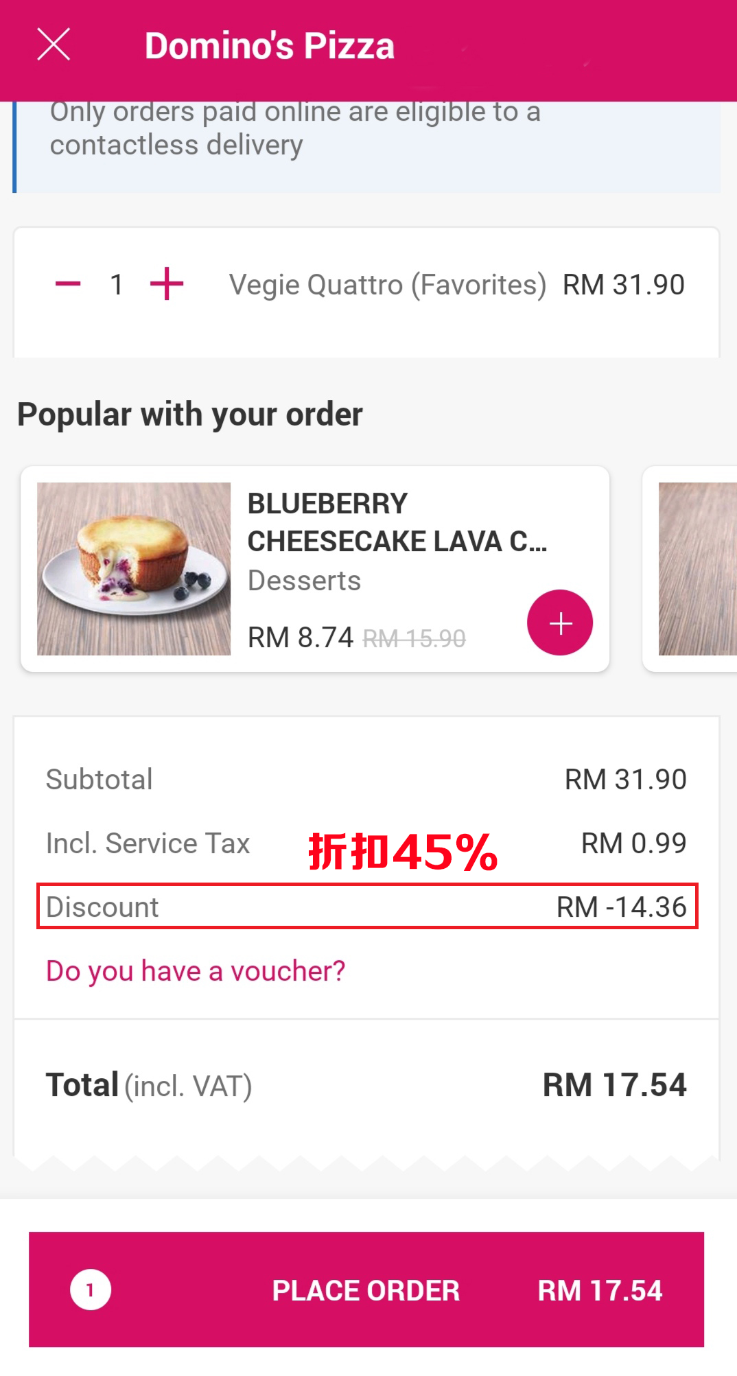 ▼ 如:Domino’s Pizza 可享有45%折扣!