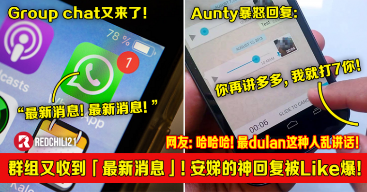 一名大马女子日前在面子书分享一段有关 WhatsApp 语音的20秒视频,视频中的 WhatsApp 群组收到一则自称是“最新消息”的语音信息,但内容并不属实。安娣相信是“beh tahan”这种信息了,竟然“大暴走”地在下方用语音回复!安娣的反应让该帖子在不到1天内,就多达7,000次分享!
