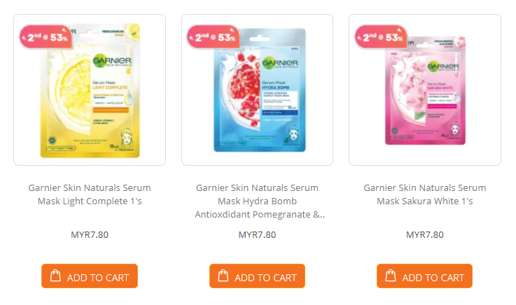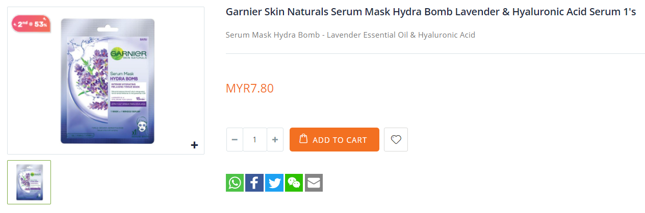 ▼ Garnier Skin Naturals Serum Mask Hydra Bomb Lavender & Hyaluronic Acid Serum 1’s —— 售价RM7.80