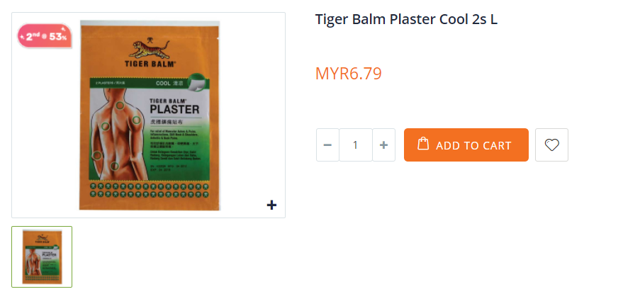 ▼ Tiger Balm Plaster Cool 2s L —— 售价RM6.79