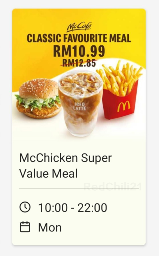 促销活动:大马 McDonald’s App —— 美食优惠券