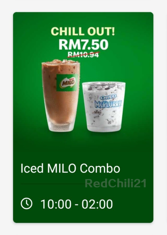 套餐中包括:1杯Iced Milo+1杯Oreo McFlurry
