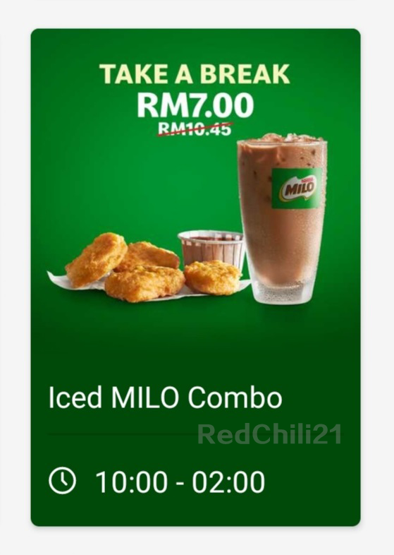 套餐中包括:1杯Iced Milo(M)+4片Chicken McNuggets