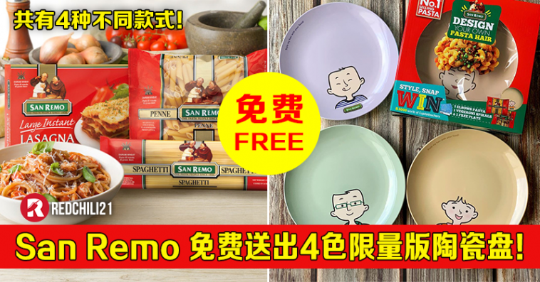 又有新赠品要告诉大家!著名San Remo 意大利面品牌要免费送出4款超萌陶瓷盘子啦!