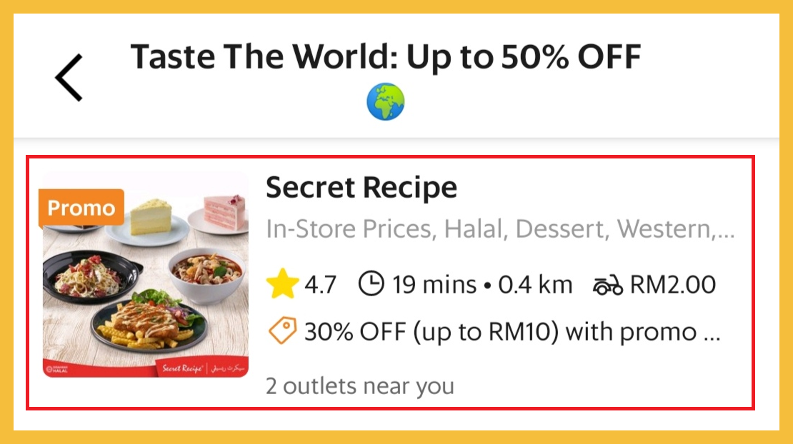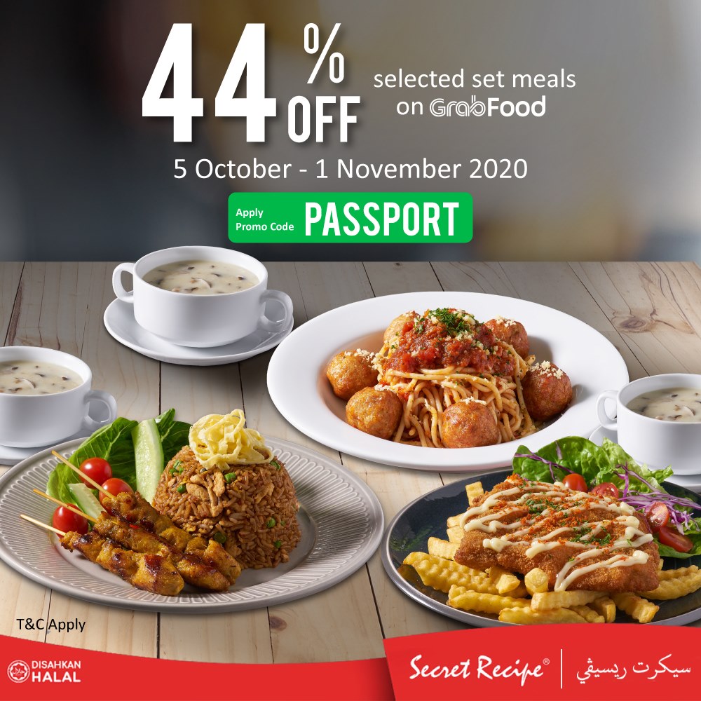 只要你通过外卖公司GrabFood 订购Secret Recipe 美食就可折扣高达RM10大优惠!