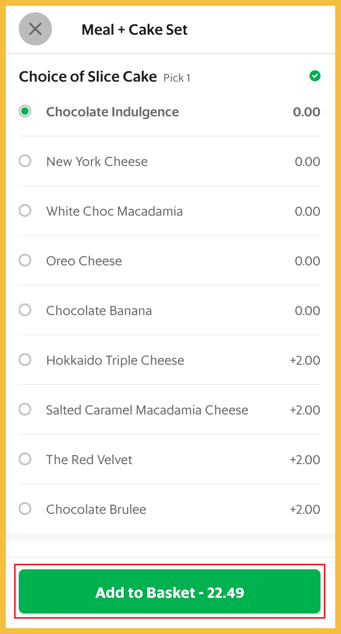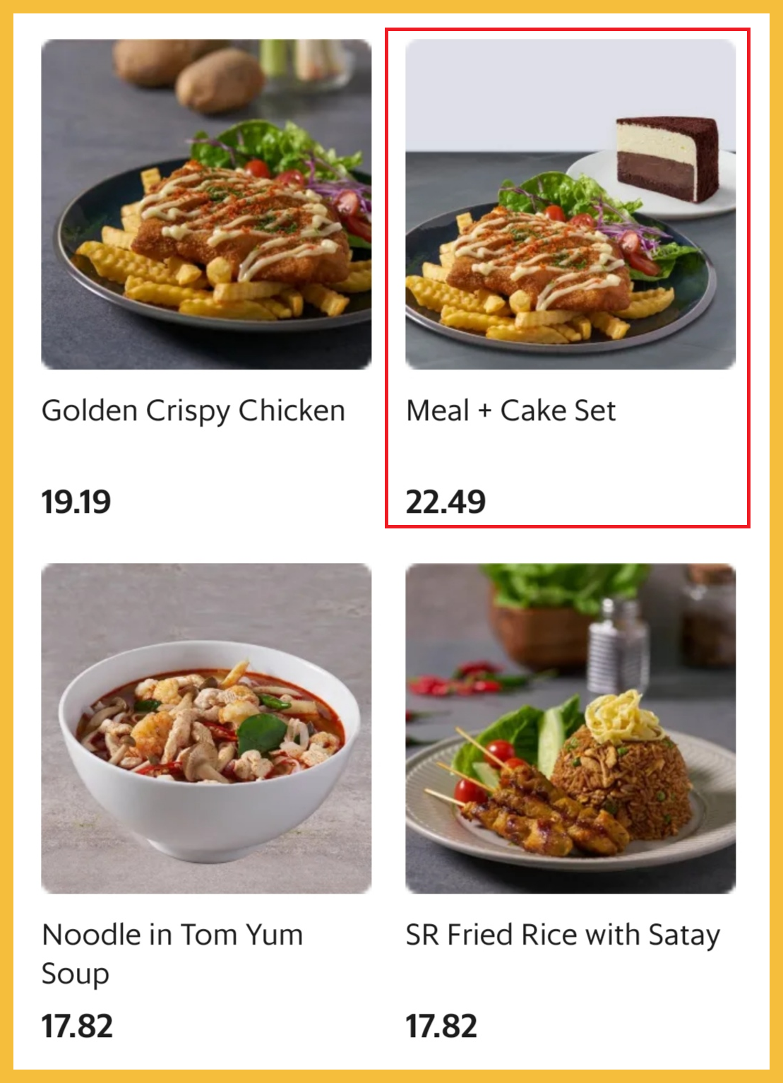 步骤2:选择你想吃的食物或套餐,例如:小编选择Meal+Cake 套餐