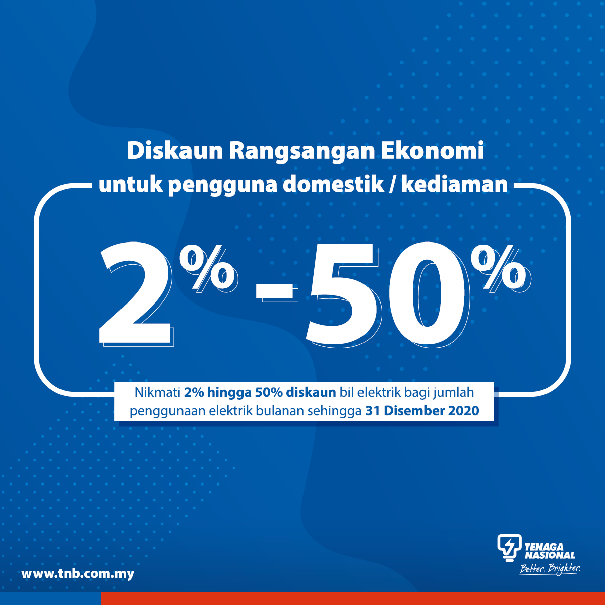根据TNB 在面子书上显示,配合之前政府推出关怀人民振兴经济配套(Prihatin)。国能从3月起开始提供电费折扣,让民众能够减轻因疫情所带来的负担。