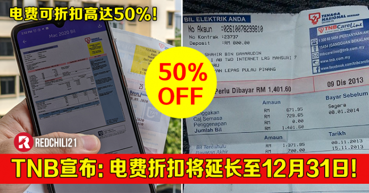 好消息!大马国能TNB 宣布:电费折扣将延长至12月31日。民众可继续享有每月2%至50%的电费折扣。