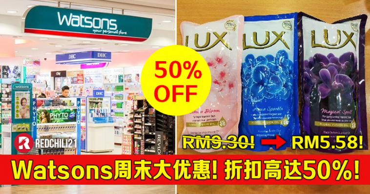 Watsons 又推出周末大促销啦!沐浴露、面膜、彩妆产品及日常用等都享有高达50%折扣!