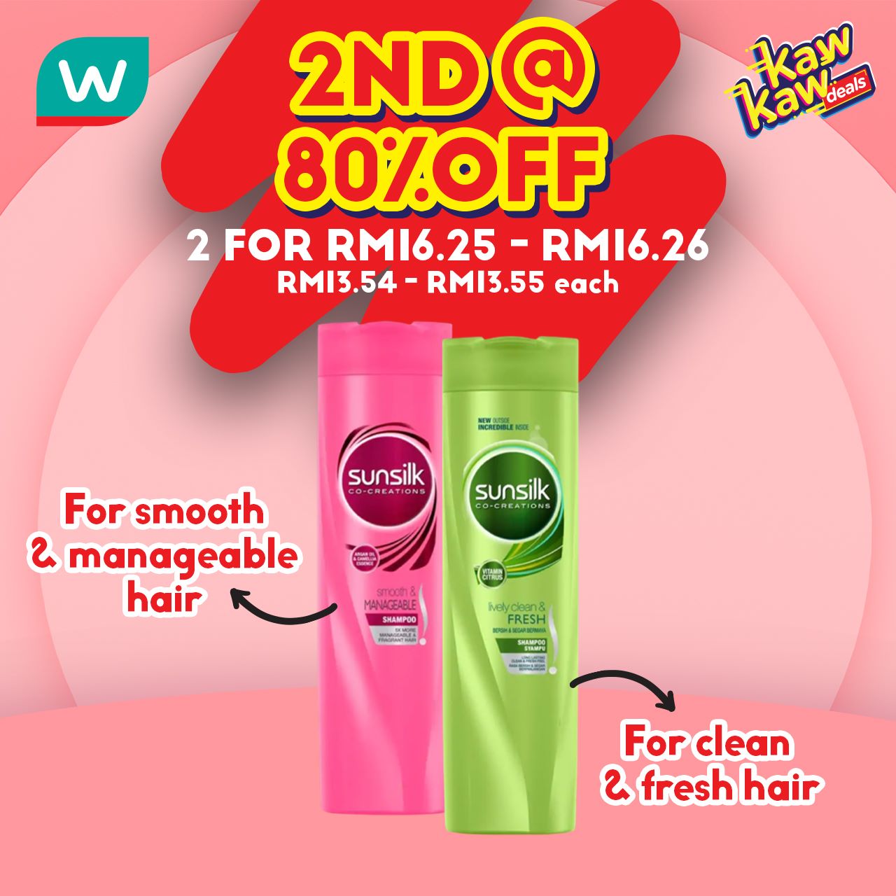 促销活动:大马 Watsons —— 沐浴露及洗发液大促销!第二样商品折扣80%!