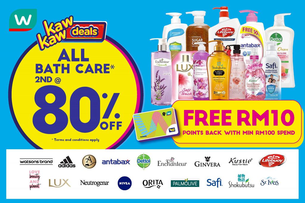 如果你没有那么多朋友的话,其实Watsons 还有很多东西给你买的!例如以下的沐浴露及洗发液都是购买第2样商品即可获得80%折扣优惠哦!