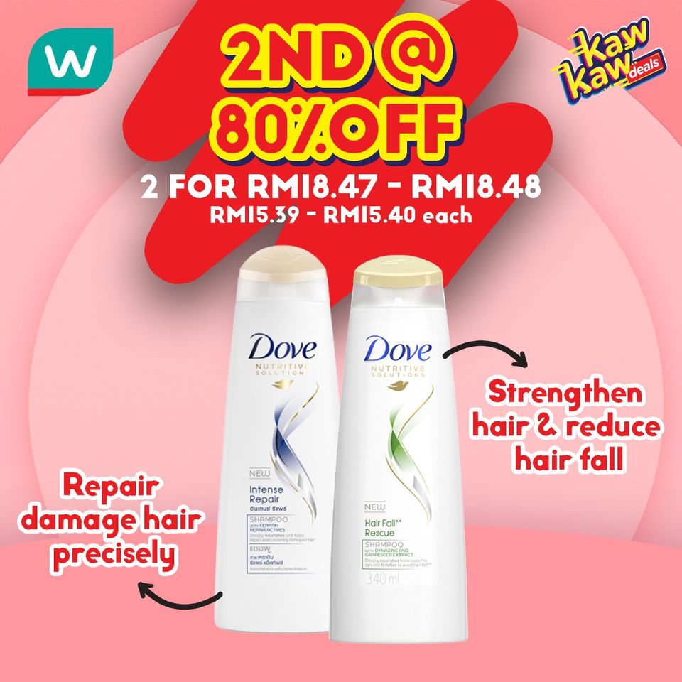 ▼ 2x Dove 洗发液RM18.47- RM18.48 (1瓶只需RM9.235- RM9.24)