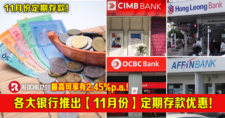 最新定期存款优惠出来了!大马各大银行推出【11月份】定期存款优惠,目前最高可享有2.45%p.a.!