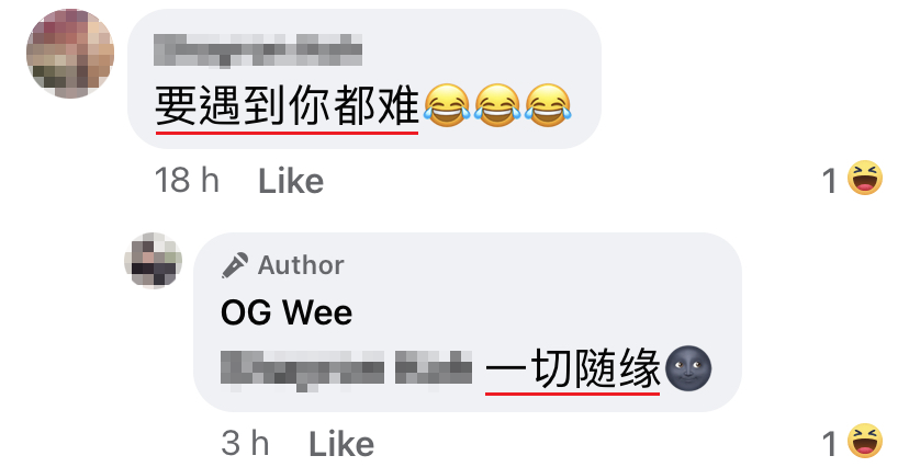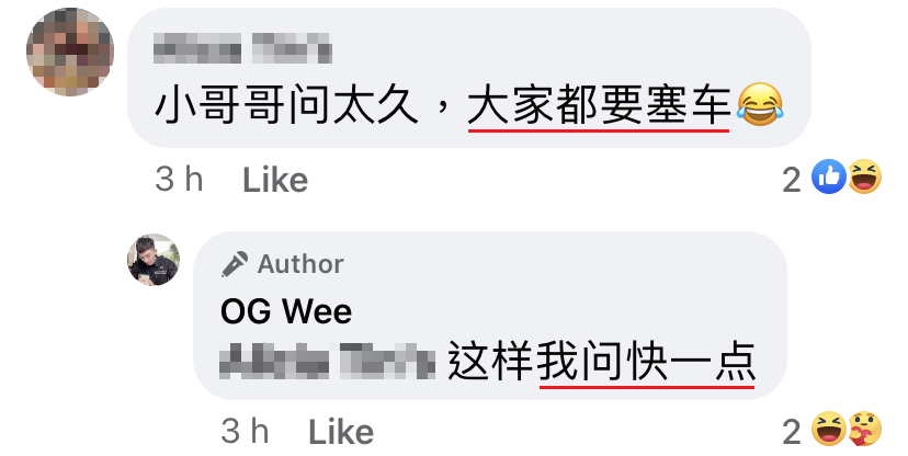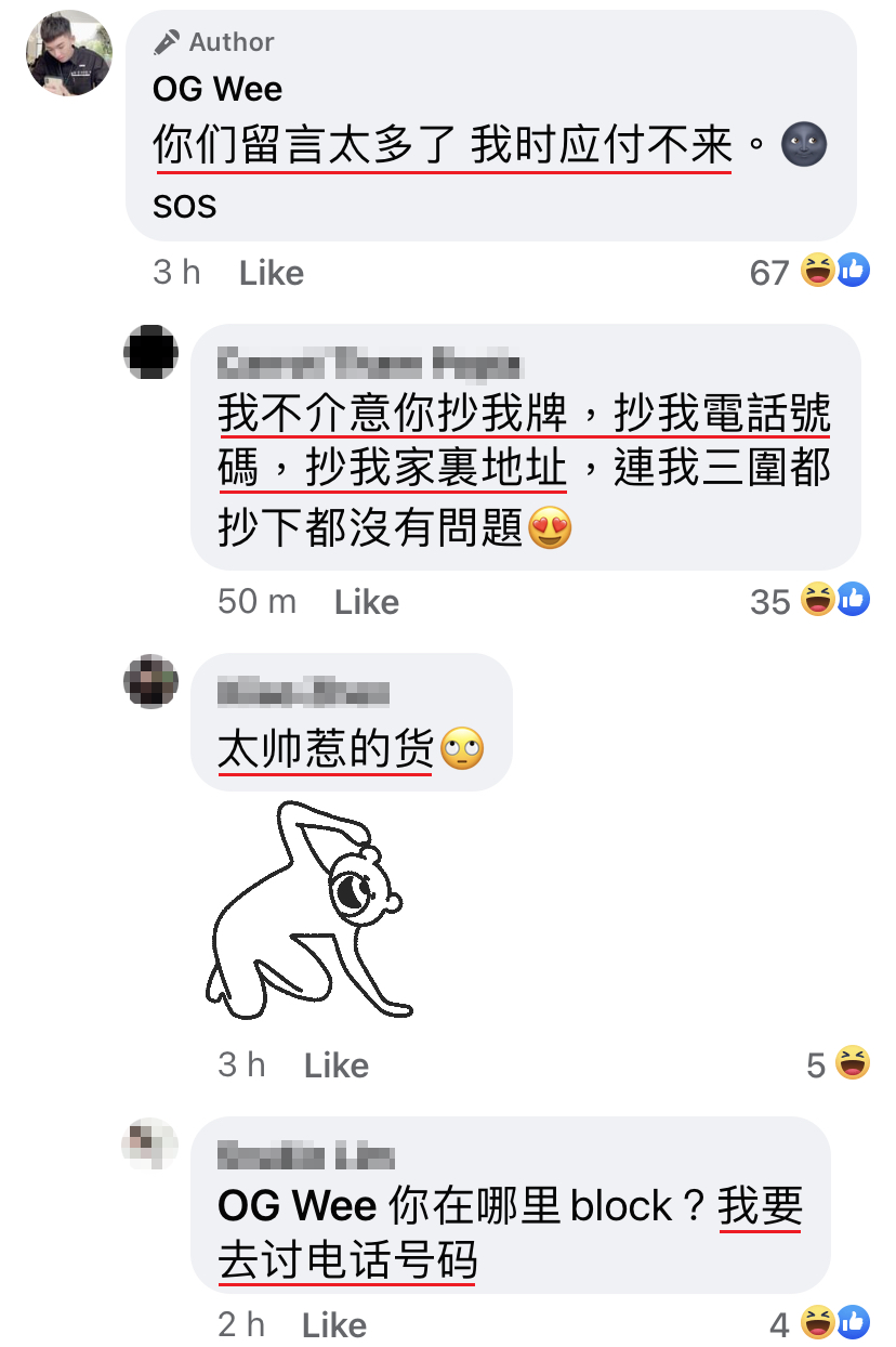 ▼ OG Wee 留言表示:来不及回复每个留言!
