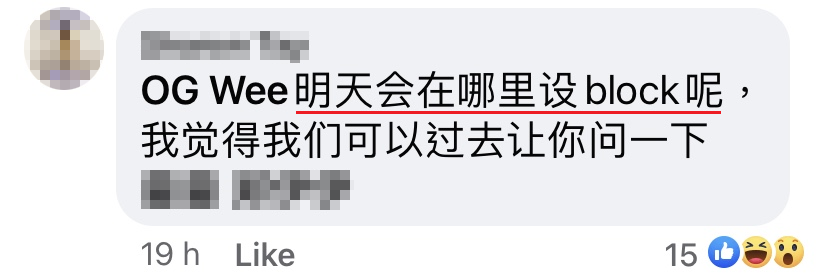 除了一张在路障执行任务的自拍照,OG Wee 还在帖文里写道:「 又回到RoadBlock日子 准备好再次被我问了吗?」