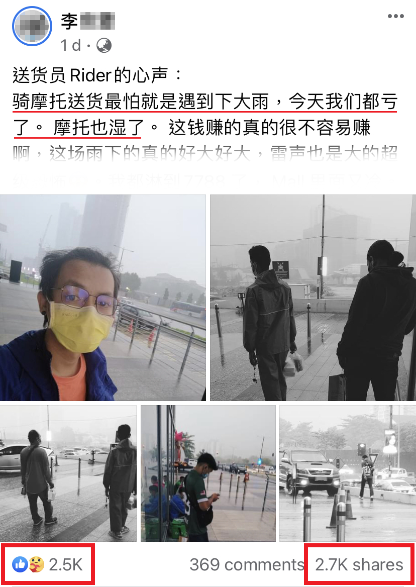 近日,一名大马送餐员通过面子书发文,说出他们这份职业的真实心声,引发许多人的共鸣和省思!