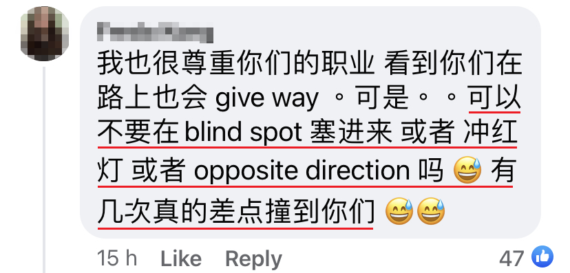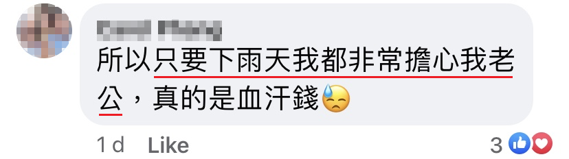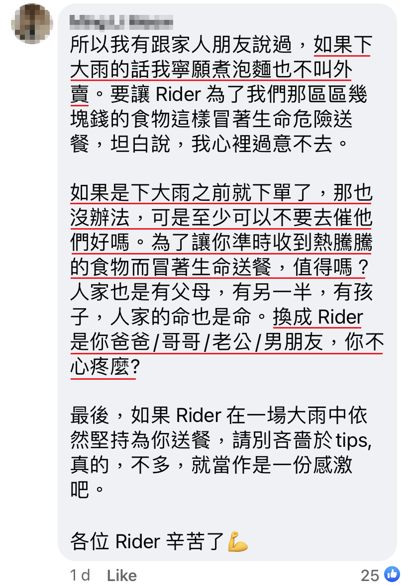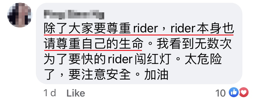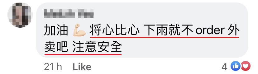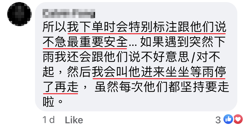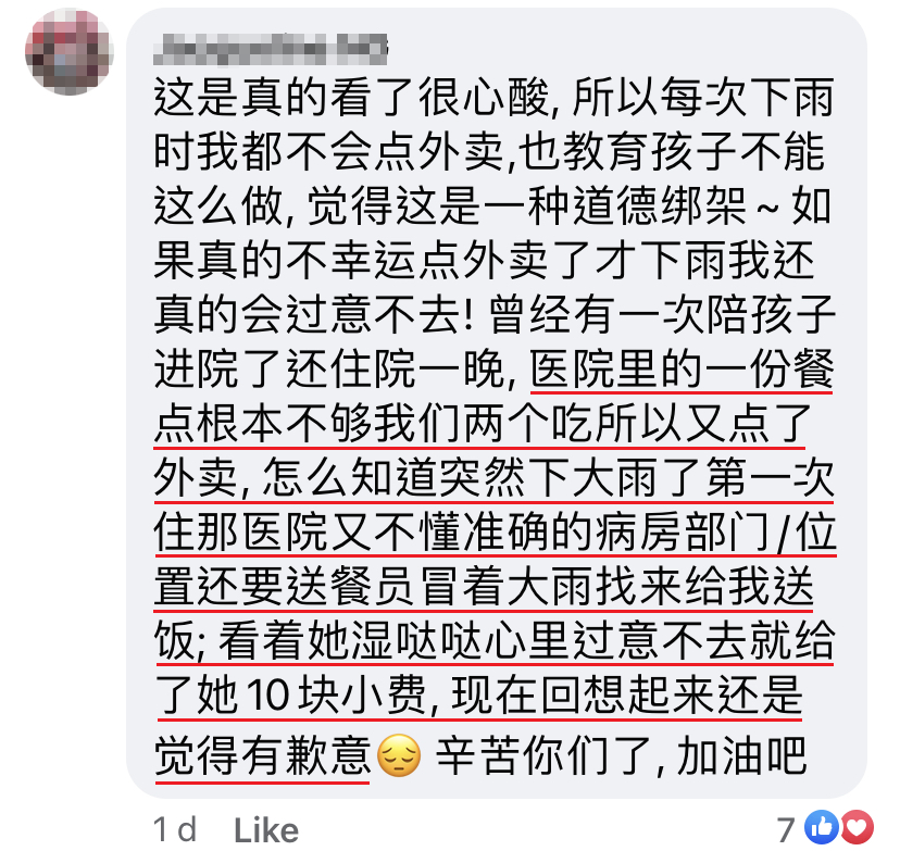 ▼ 送餐员的家人也来留言:经常担心他们的安全!