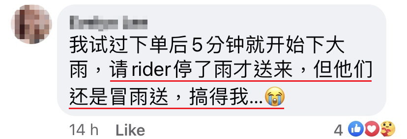 ▼ 然而仍有一些奥客坚持下雨天要准时送到!