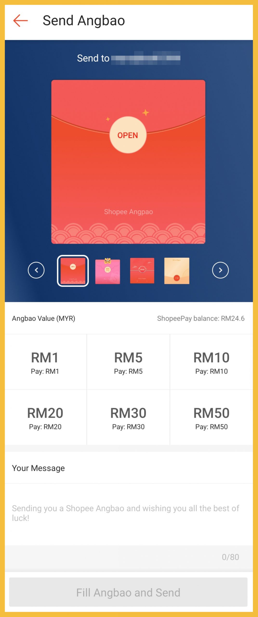 ※ 想要制造惊喜给对方,可通过Shopee Angbao 给家人、朋友或情人哦!