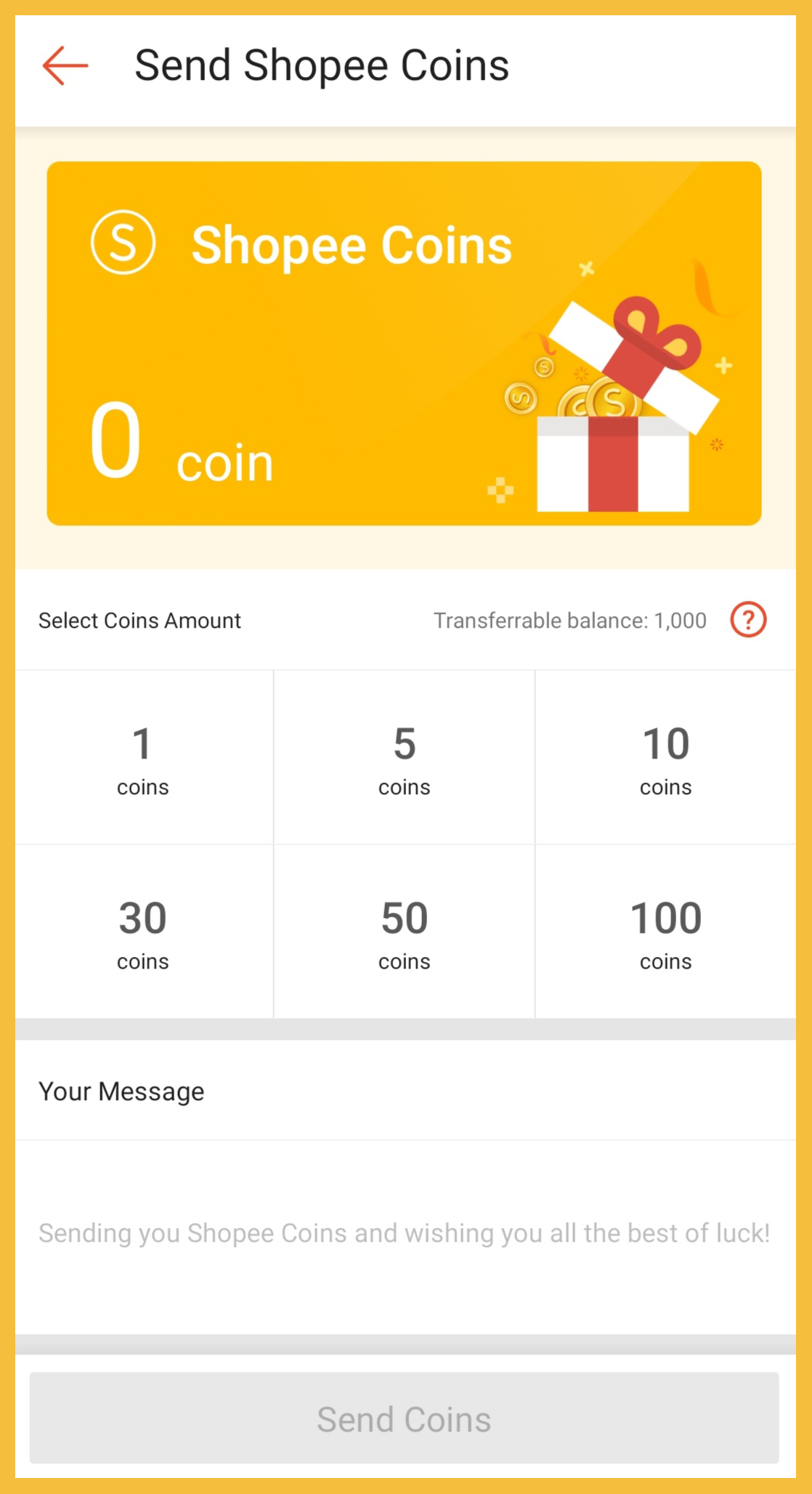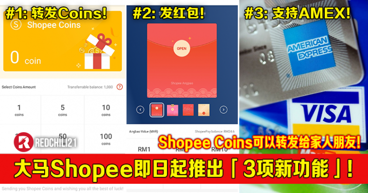 ① 第一项新功能:Shopee Coins 可以转发给朋友