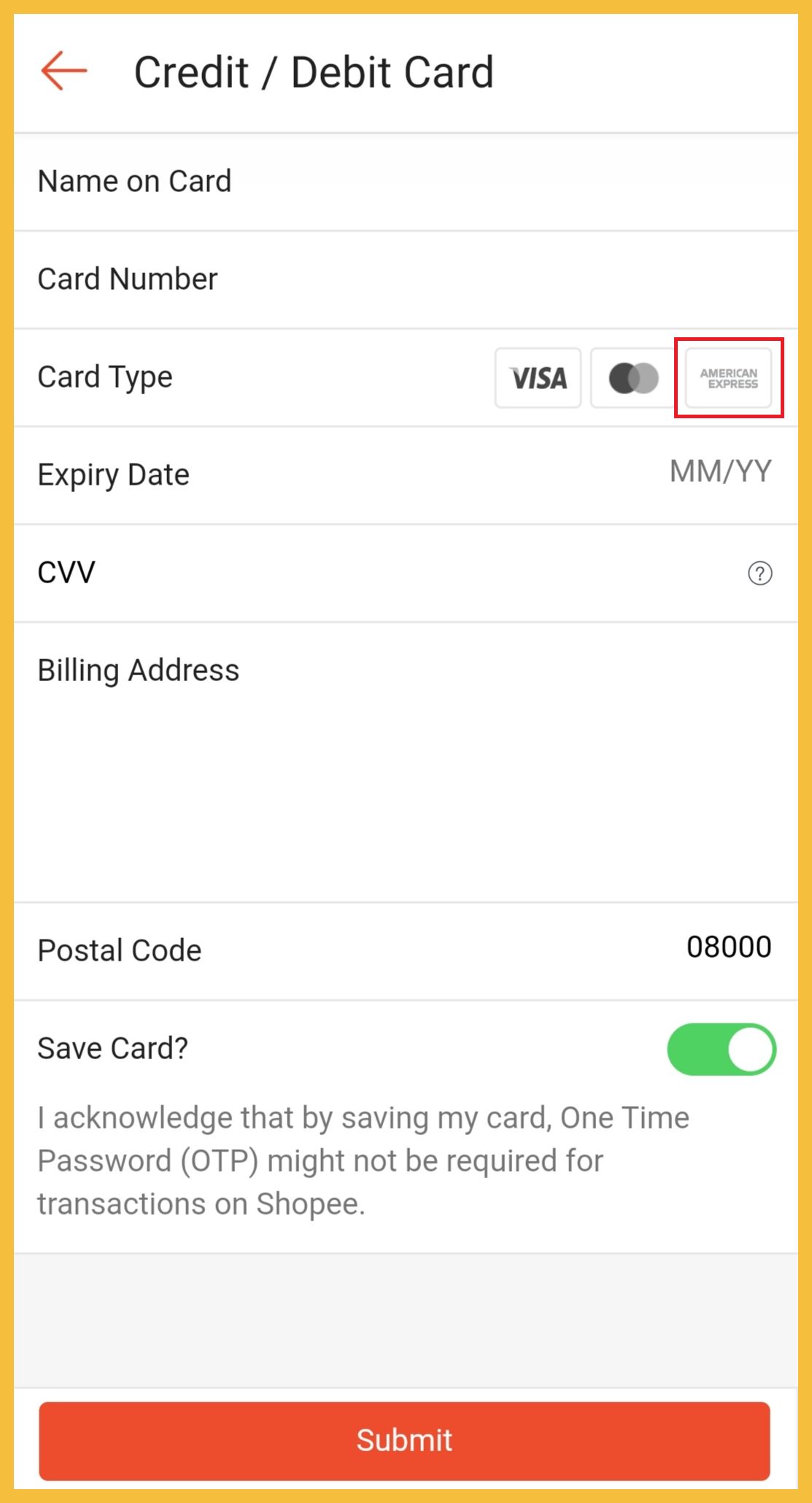 之前Shopee 仅接受Visa 和Mastercard 的信用卡。如今可支持American Express 卡付款了!
