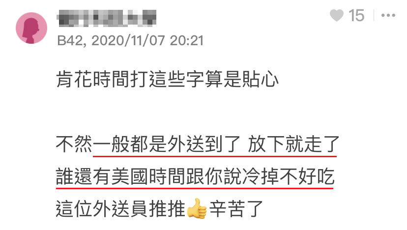 ▼ 但是不是每个人都这么幸运,能够遇到这么好的外送员…