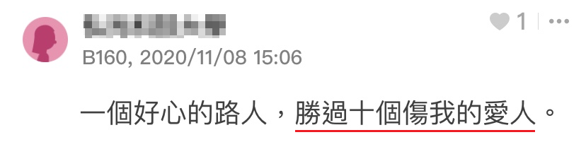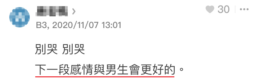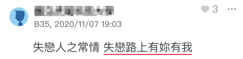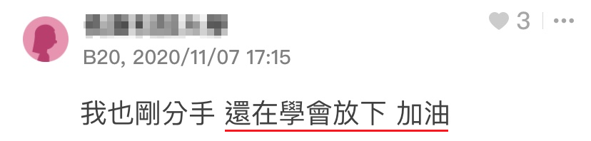 每个人面对感情的处理方式不同,有人觉得我还有办法上来发文讨拍,是不是根本就不伤心。我只能说如果我今天没有靠朋友们陪我聊天或是暖心的各位鼓励我,我应该自己一个人在房间会痛苦到甚至做一些不好的事情。