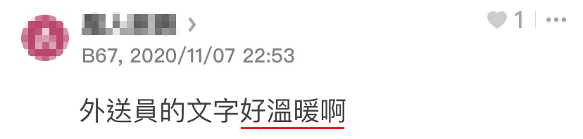 外送员在不知情的情况下写出这句话,不经意的温暖来的突然却特别惊喜又感动!祝福原PO早日走出失恋的伤痛吧!