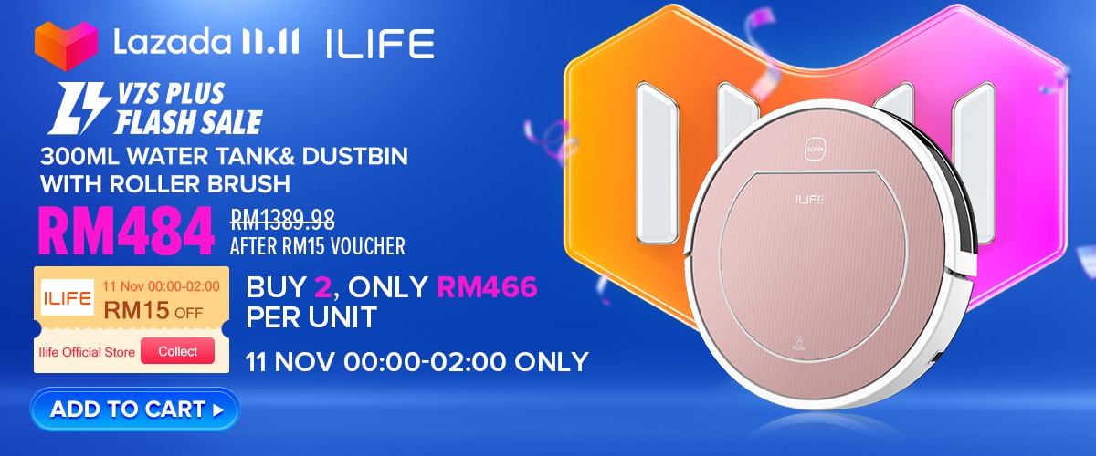 ▪ ILIFE V7s Plus Robot Vacuum Cleaner – RM1389.98 RM484