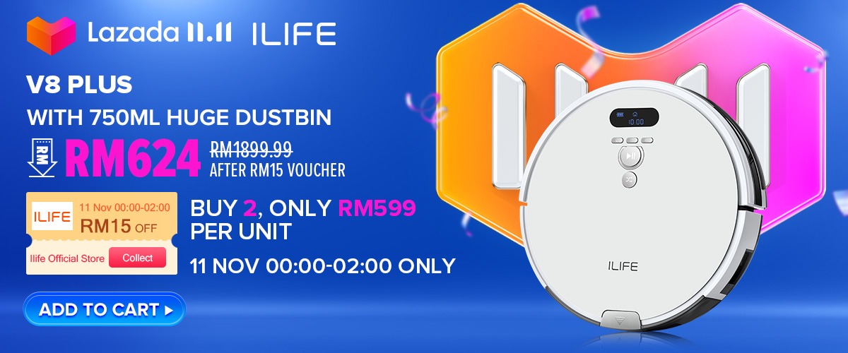 ▪ ILIFE V8plus Robot Vacuum Cleaner – RM1899.99 RM624