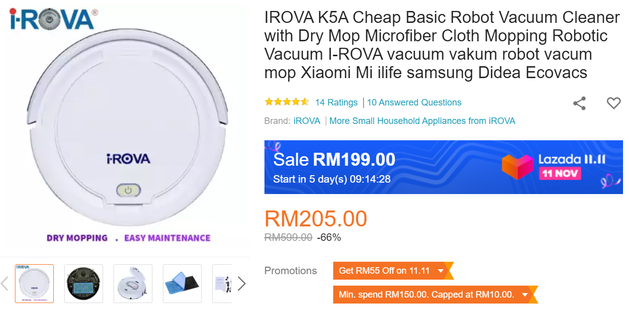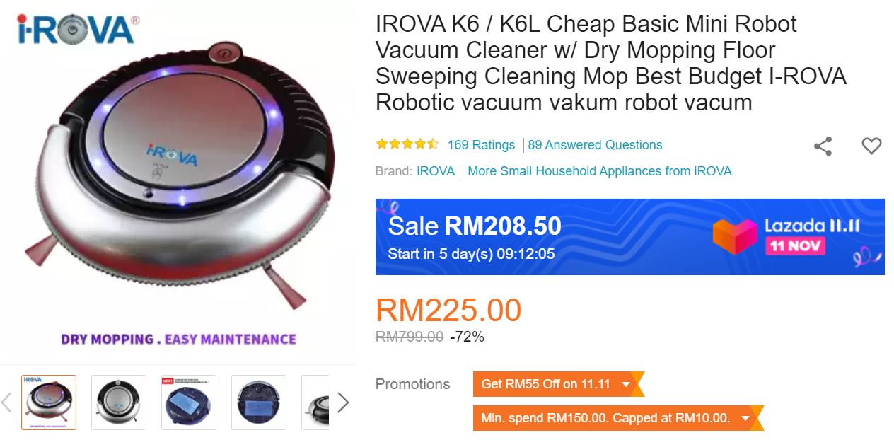 ▪ IROVA K5A Cheap Basic Robot Vacuum Cleaner – RM599 RM199