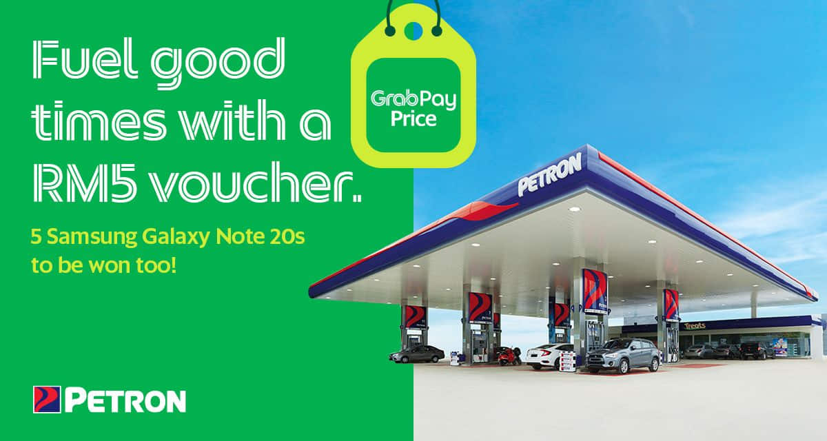 - 在Petron 油站添油或消费RM30 或以上,并使用GrabPay 可获得RM5 折扣券