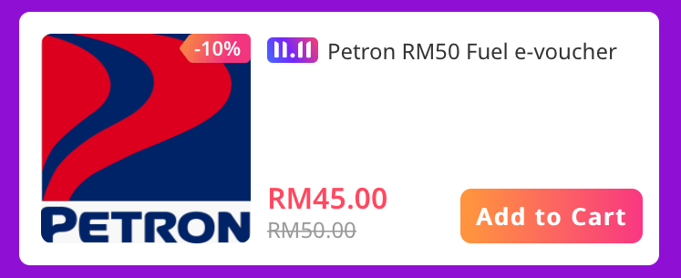 ① 在双十一Lazada Flash Sales 购买Petronas 添油礼券可获得RM5 折扣