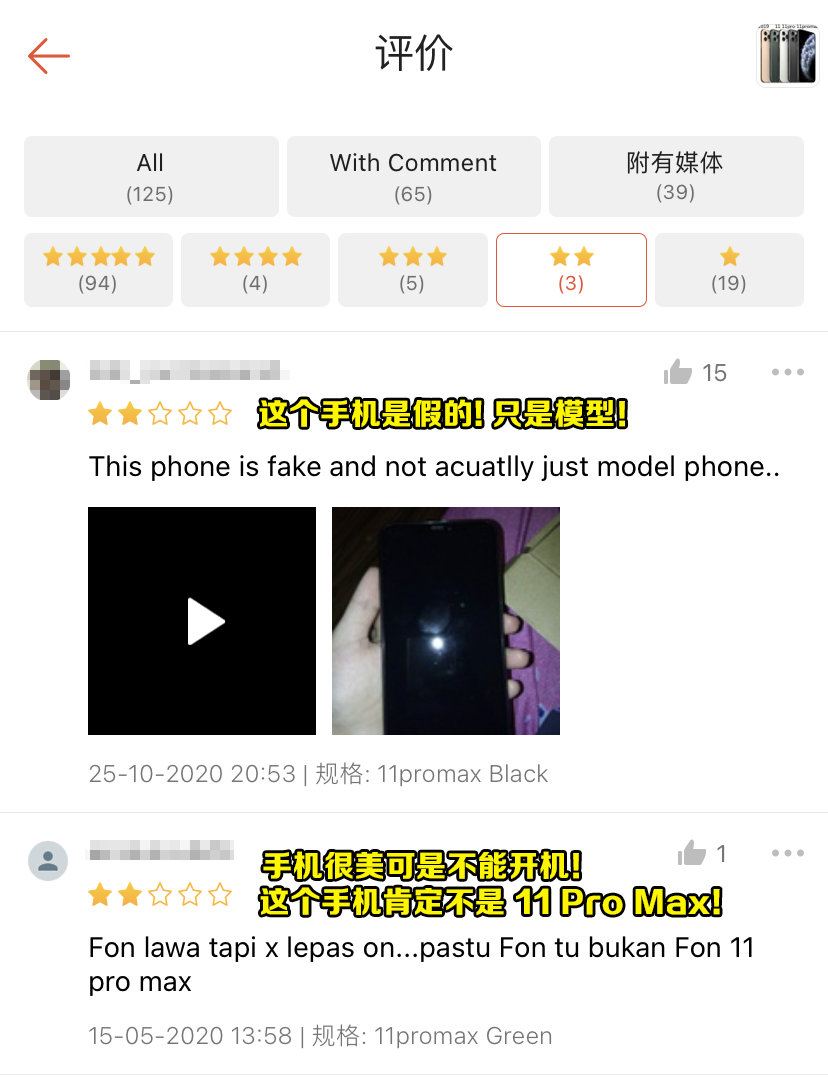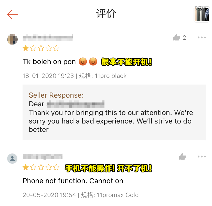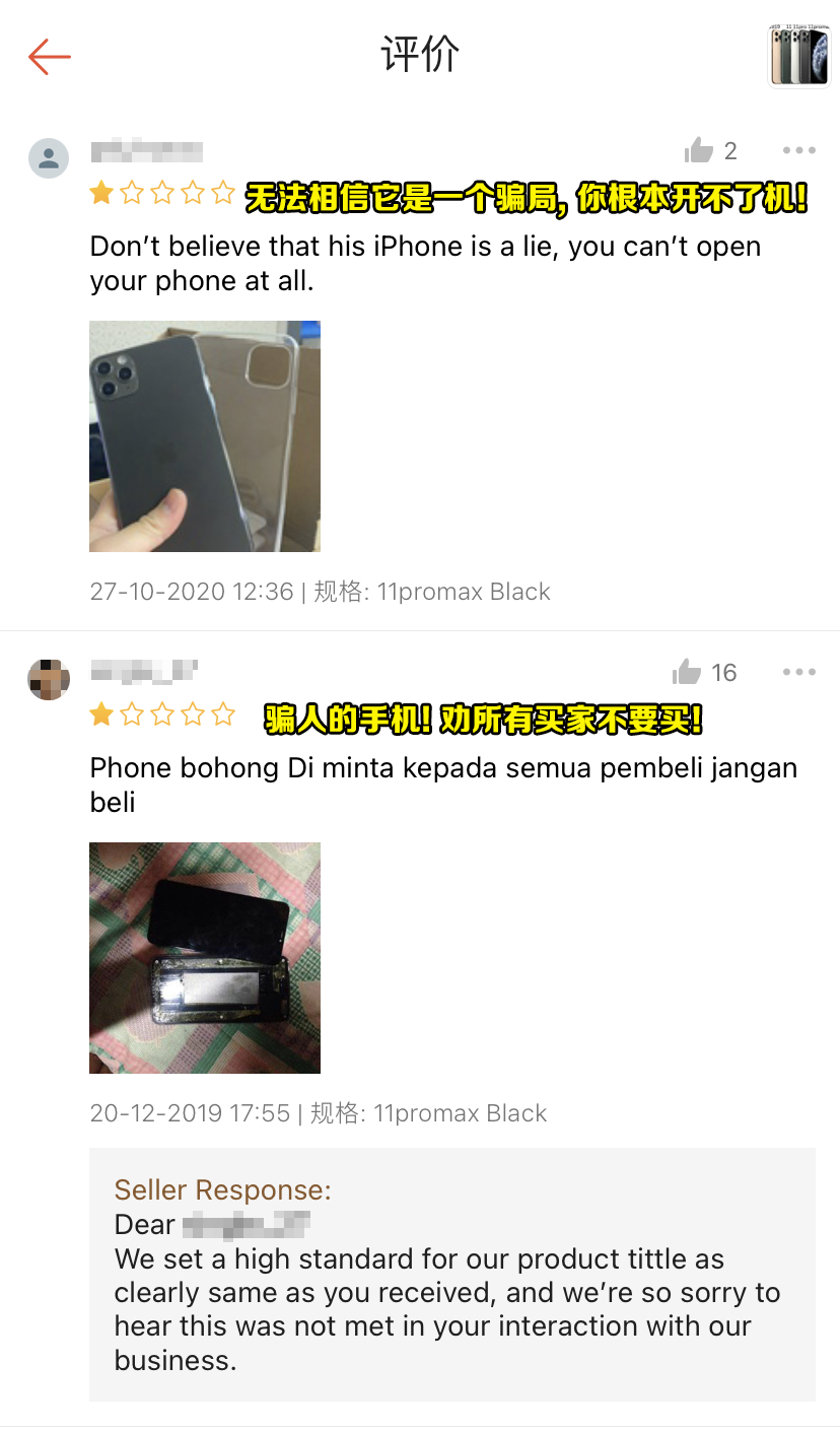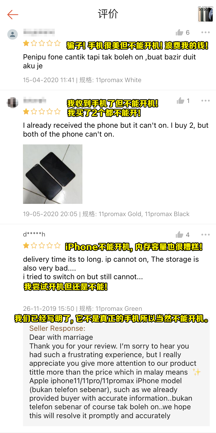 ▼ 开箱以后才发现是“假的iPhone”!这些买家不管三七二十一,先评论投诉卖家!