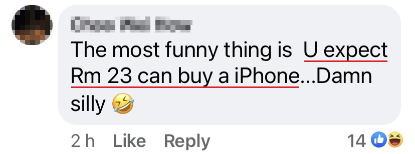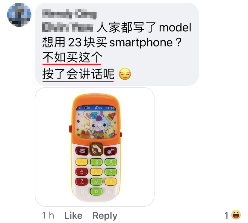 ▼「你怎么会期望 RM23 就可以买到一支 iPhone 呢?」