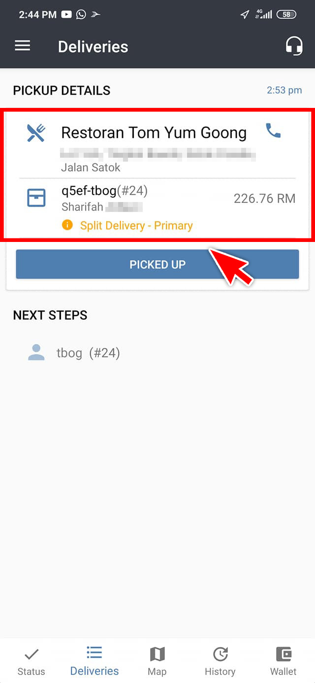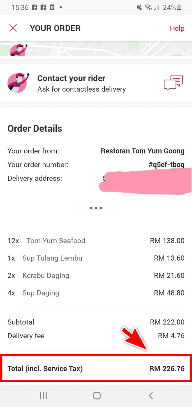 ▼ 手机截图显示,小男孩用 FoodPanda App 点餐并且成功下了单,他一共点了 RM226.76,分别是: