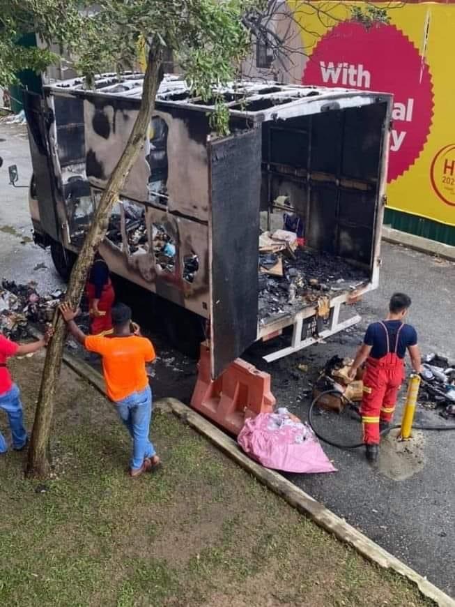 中国发生货车起火事故以后,就在昨天,我国的快递货车也着火了!据网友透露,吉隆坡的一辆快递罗里于昨天下午突然起火燃烧,从照片中可以看到,载满货物的罗里被烧得一片漆黑!