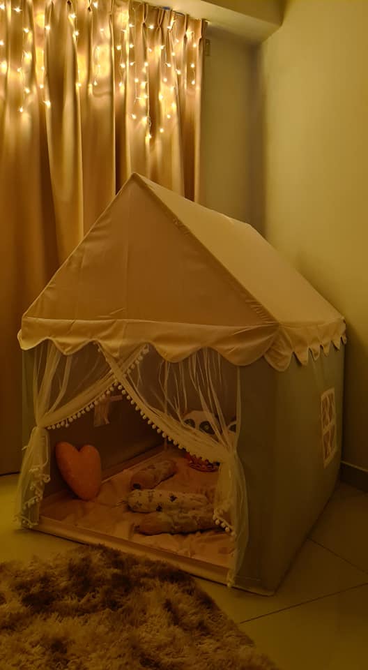 这个是我们讨论了,想给他们一个童话空间,公主房。装出来的效果真的很美很美,大人都想进去玩呢,更何况是小朋友!